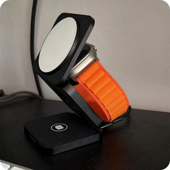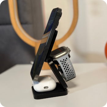 "Dokonalá nabíječka pro Apple ekosystém - iPhone v libovolné poloze, Apple Watch a AirPods, kompaktní, kvalitní materiály, možnost ohnout dle potřeby, USB-C, dostatečný výkon, cestovní pouzdro. Hodí se na noční stolek i na cestování. Už jsem koupil 2." Filip M.
